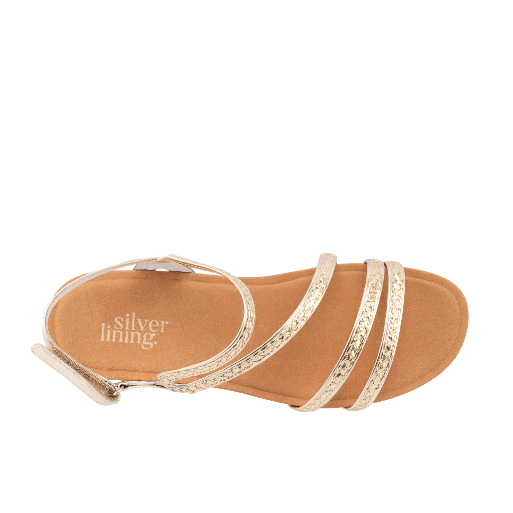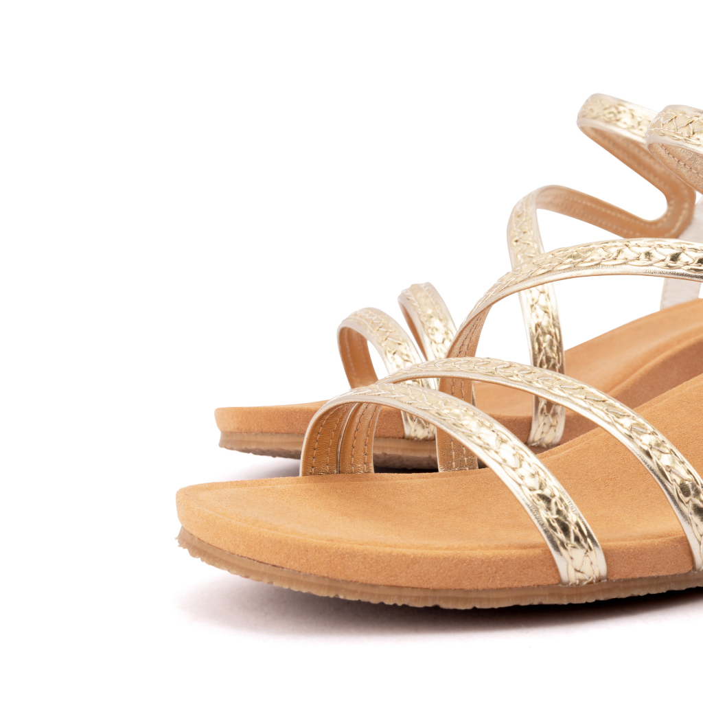The Utopia Wedge blends sleek style with everyday comfort. A chic strappy braid accents the top of the shoe, adding texture and visual interest. Designed with a supportive arch-contoured footbed for a secure, tailored fit, this sandal features soft leather uppers and a lightweight 4 cm wedge that transitions effortlessly from weekday sophistication to weekend ease.